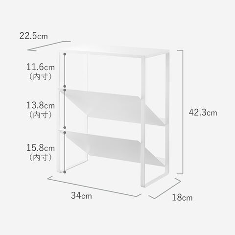 内寸サイズ天板/幅34×奥行18cm 棚板上段/幅31×奥行24.9×高さ11.6cm 棚板下段/幅31×奥行24.9×高さ13.8cm