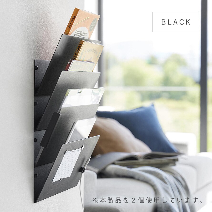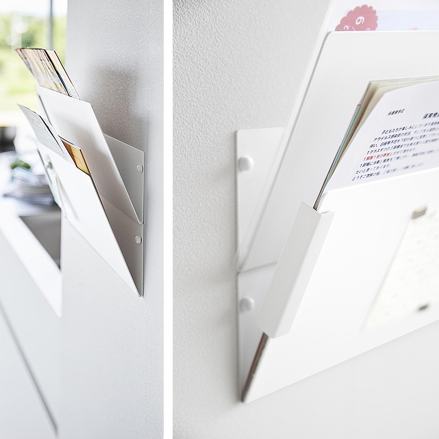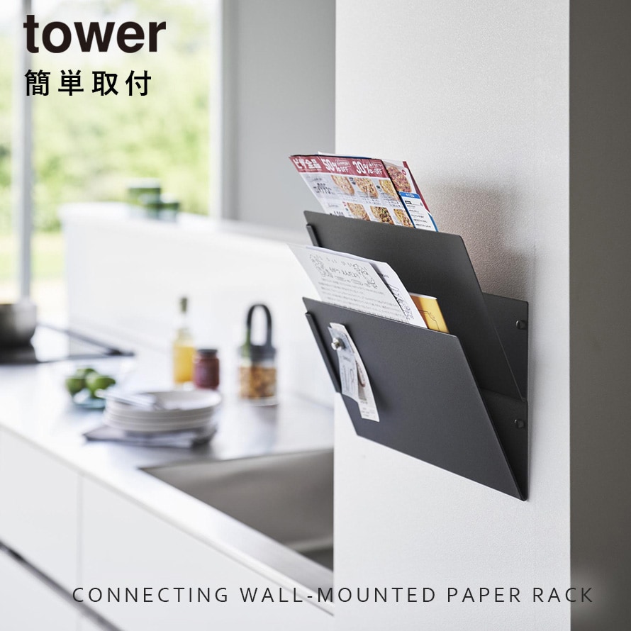 【ポイント5倍】ウォール縦横連結プリント収納ラック タワー 石こうボード壁対応 2個組 山崎実業 tower 書類 ラック 斜め 壁掛け プリント 収納 ファイルボックス おしゃれ モノトーン ホワイト ブラック 1343 1344