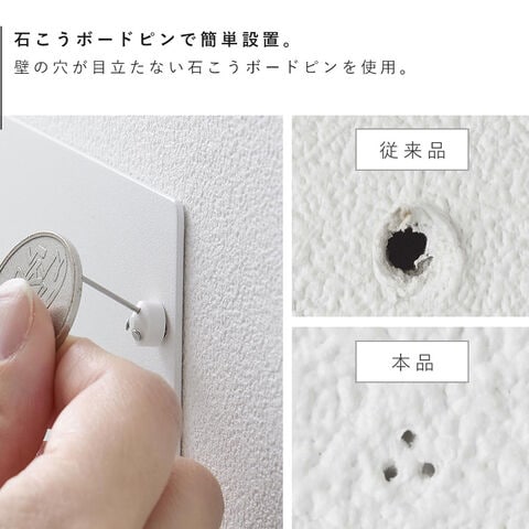 壁の穴が目立ちにくい石こうボードピンで簡単取り付け。