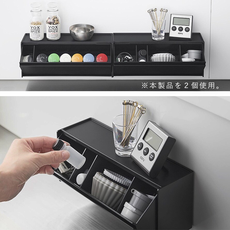 仕切りカップやピックなどのお弁当用品やスパイスボトル収納にもおすすめ。