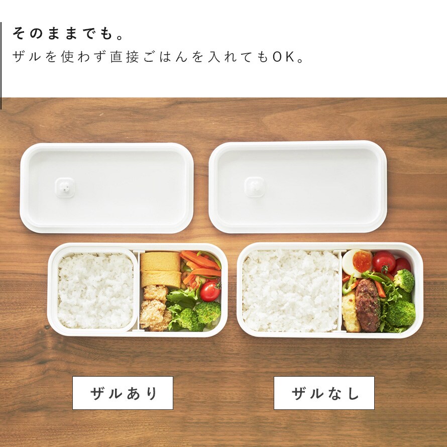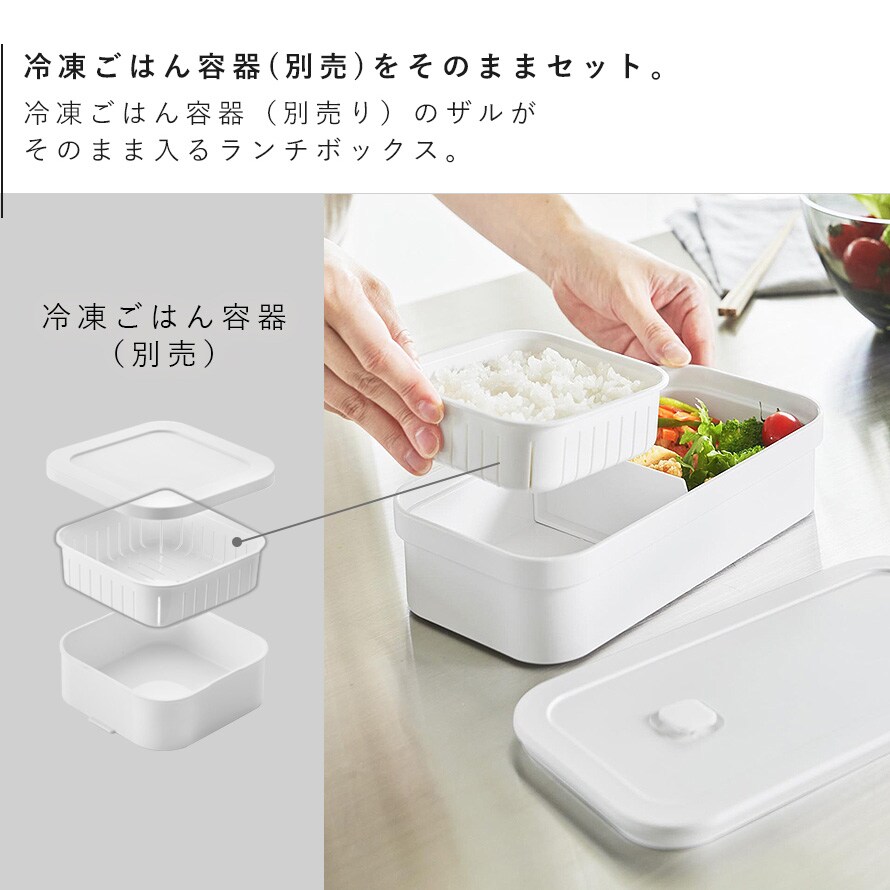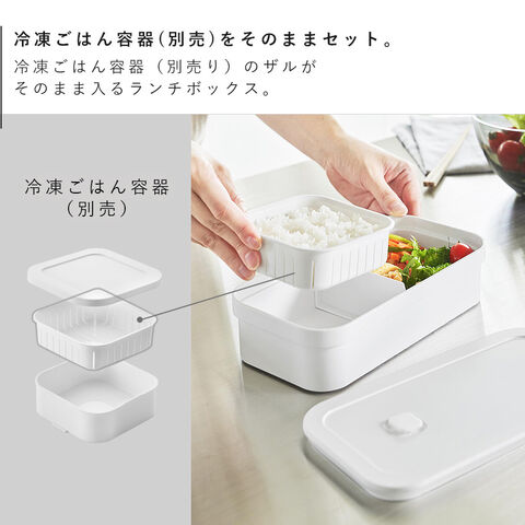 ごはんを美味しく温められる、別売の「冷凍ごはん容器」のザルをそのままセットできるランチボックス。
