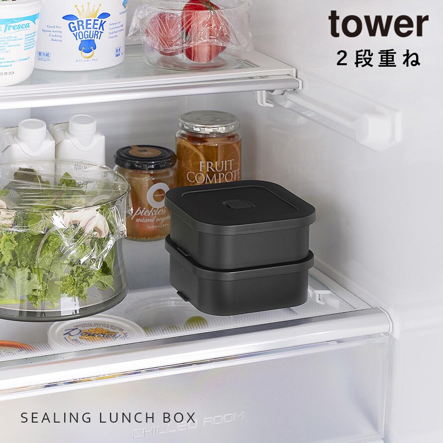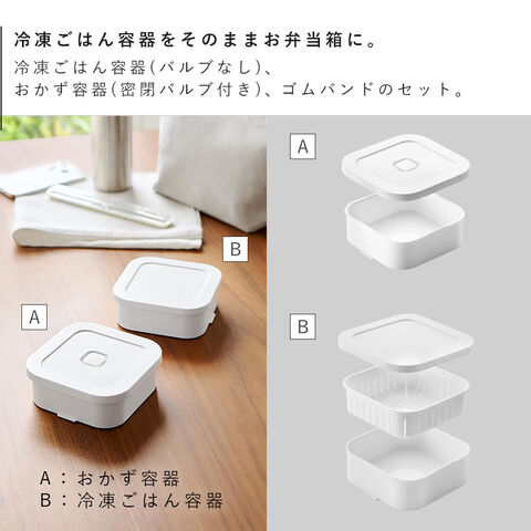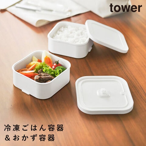 【ポイント5倍】冷凍ごはん容器&バルブ付き密閉ランチボックスセット タワー 山崎実業 tower 弁当箱 保存容器 ランチボックス 密閉 おしゃれ モノトーン ホワイト ブラック 1365 1366