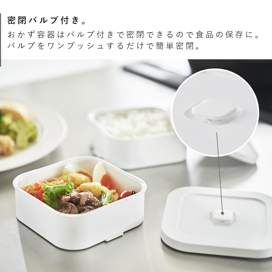 おかず容器には密閉バルブとパッキンがついているので汁漏れを防ぎます。