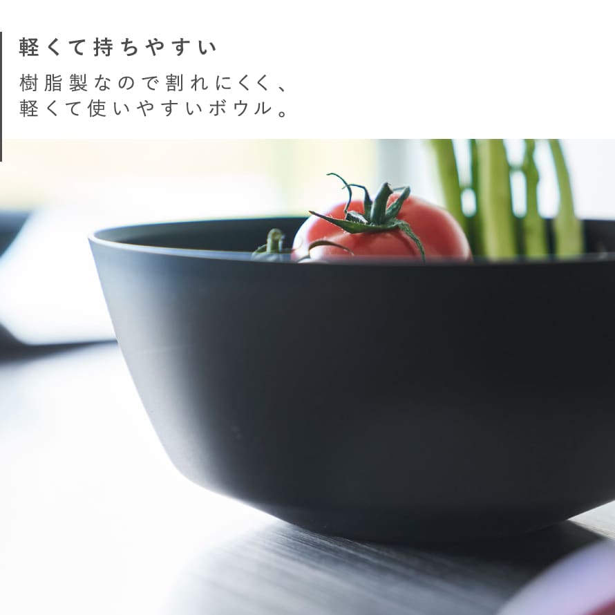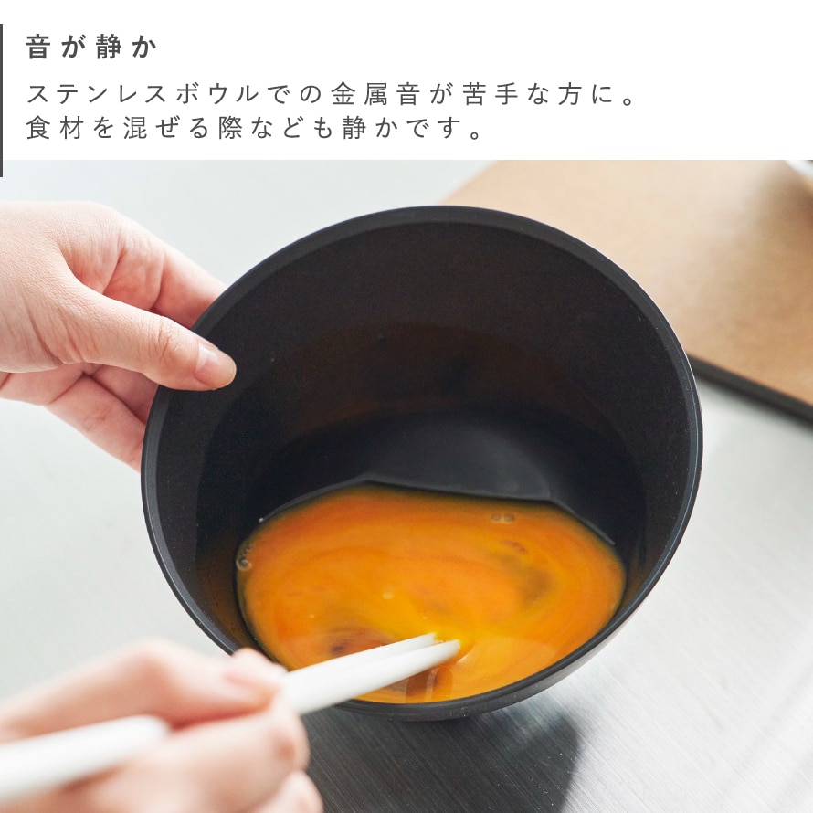 ボウルを傾けた時に斜めをキープできる構造で、食材が混ぜやすく手が疲れにくいです。