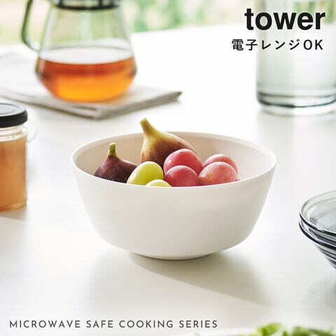 【ポイント5倍】傾けて混ぜやすい調理ボウル 電子レンジ対応 S タワー 山崎実業 tower ボウル レンジok レンジ 食洗機 食器 冷凍 おしゃれ モノトーン ホワイト ブラック 1385 1386