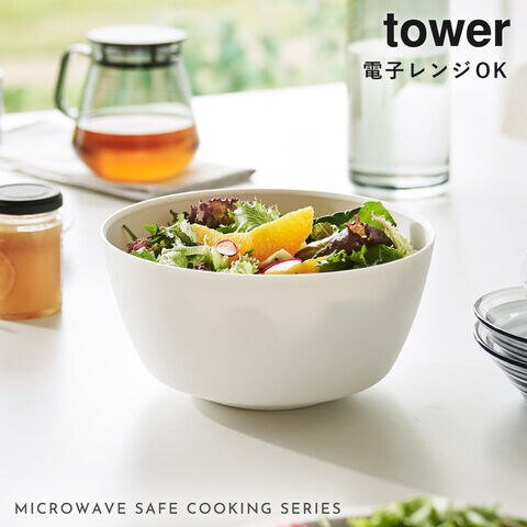 【ポイント5倍】傾けて混ぜやすい調理ボウル 電子レンジ対応 M タワー 山崎実業 tower ボウル レンジok レンジ 食洗機 食器 冷凍 おしゃれ モノトーン ホワイト ブラック 1387 1388