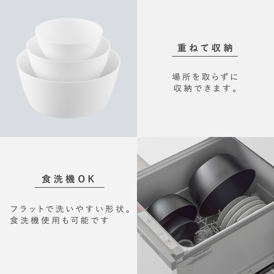 | 容量 | ボウルS/800mL、ボウルM/1.8L、ボウルL/4L |