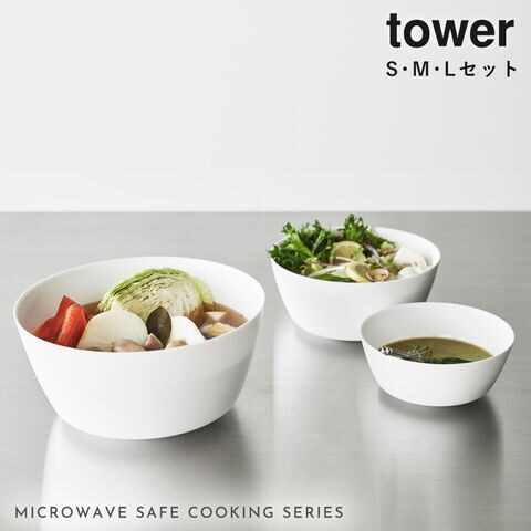 【ポイント5倍】傾けて混ぜやすい調理ボウル 3点セット 電子レンジ対応 タワー 山崎実業 tower ボウル セット レンジok レンジ 食洗機 食器 冷凍 おしゃれ モノトーン ホワイト ブラック 1391 1392