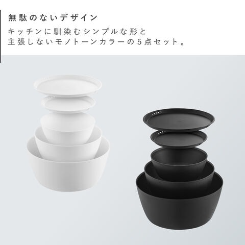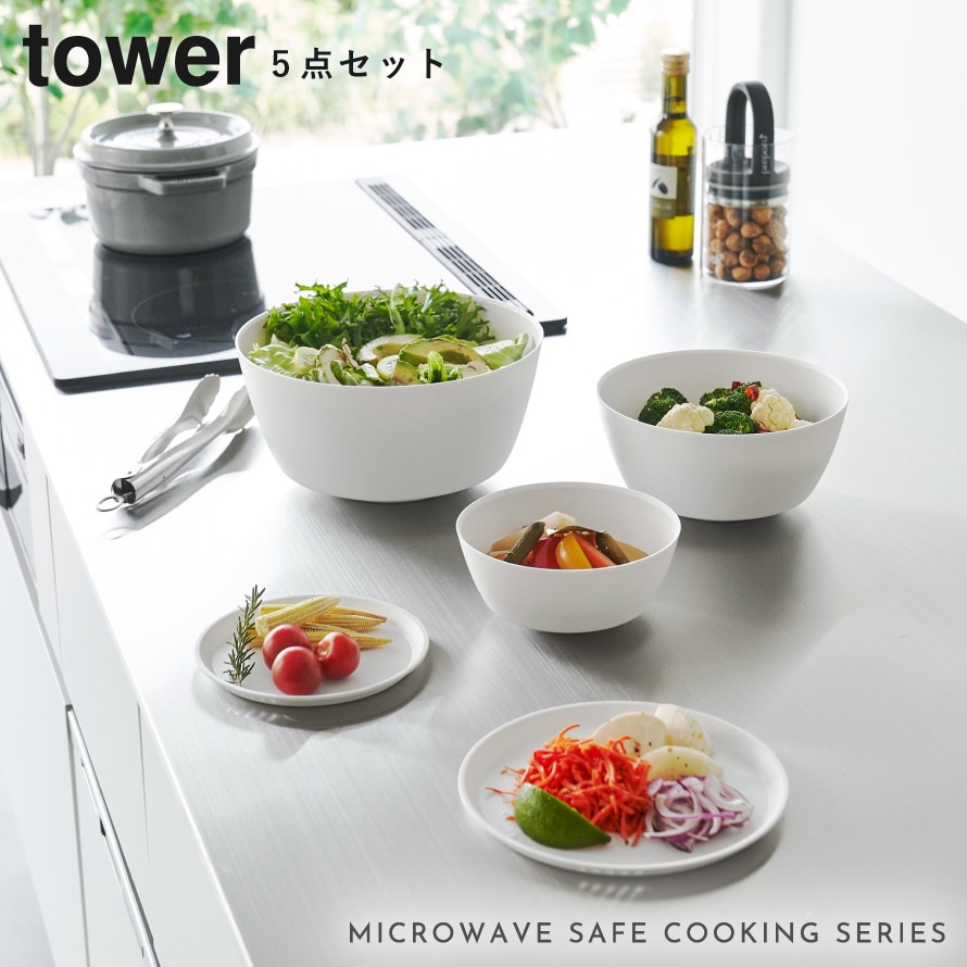 【ポイント5倍】傾けて混ぜやすい調理ボウル 5点セット 電子レンジ対応 タワー 山崎実業 tower ボウル セット レンジok 蓋付き レンジ 食洗機 食器 保存容器 冷凍 おしゃれ モノトーン ホワイト ブラック 1393 1394