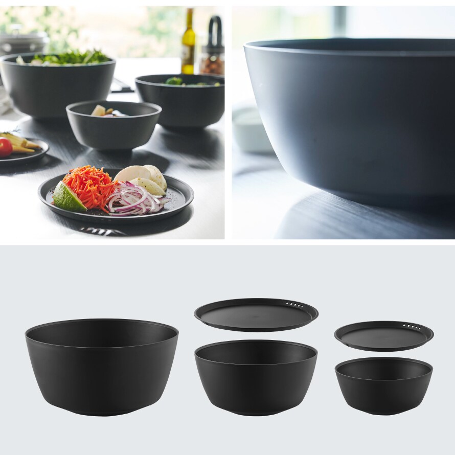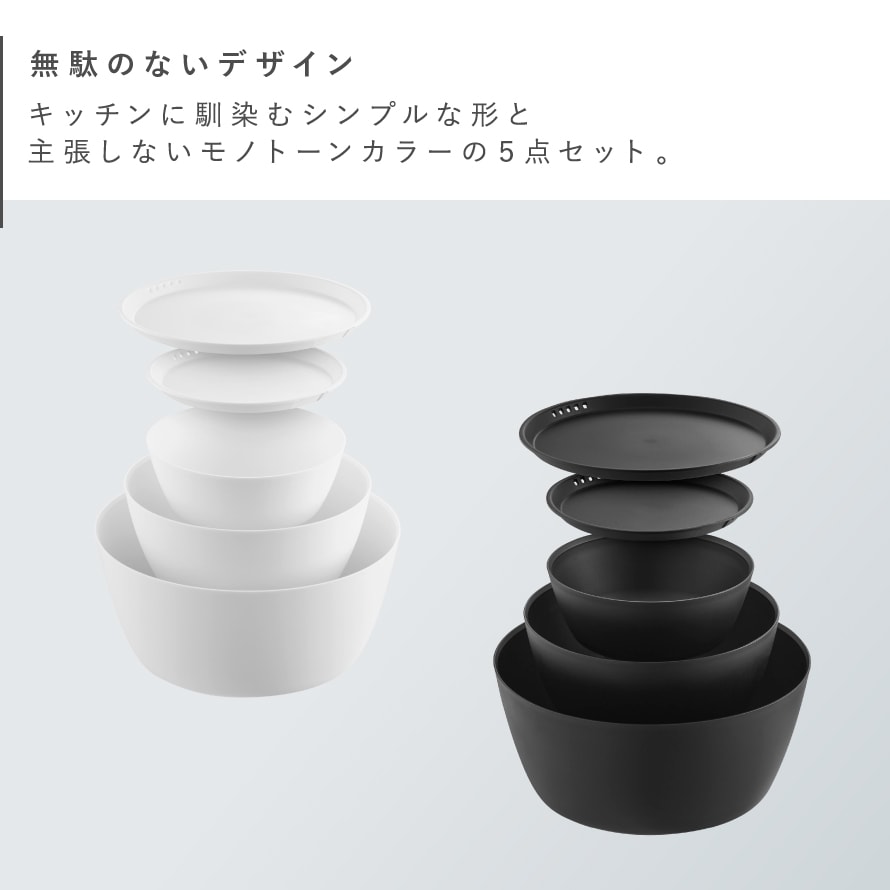 組み合わせても使いやすい3サイズのボウル+2サイズの蓋がセットです。