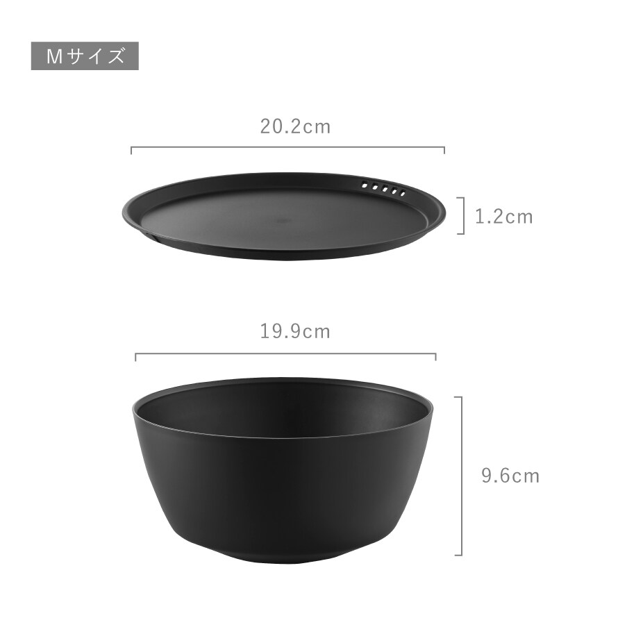 | サイズ | 【ボウル】S/幅15.9×奥行15.9×高さ7、M/幅19.9×奥行19.9×高さ9.6、L/幅24.9×奥行24.9×高さ12.4、【フタ】S/幅16.2×奥行16.2×高さ1.2、M/幅20.2×奥行20.2×高さ1.2cm |