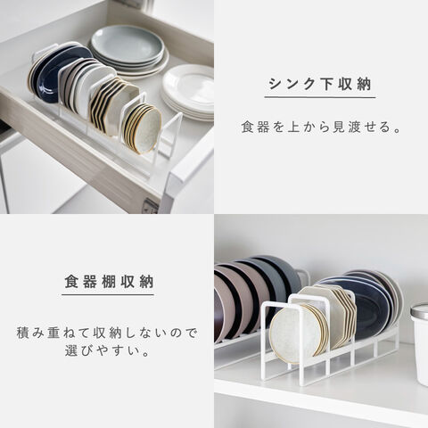 スリムなので横幅を取らずに食器棚の奥まで使えます。上から見やすく、出し入れしやすいので引き出し中への設置もおすすめです。