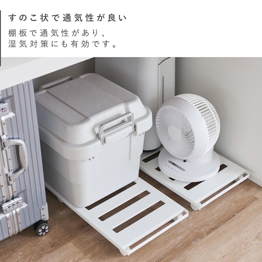 すのこ状の台車で通気性も良く、湿気対策にも有効です。