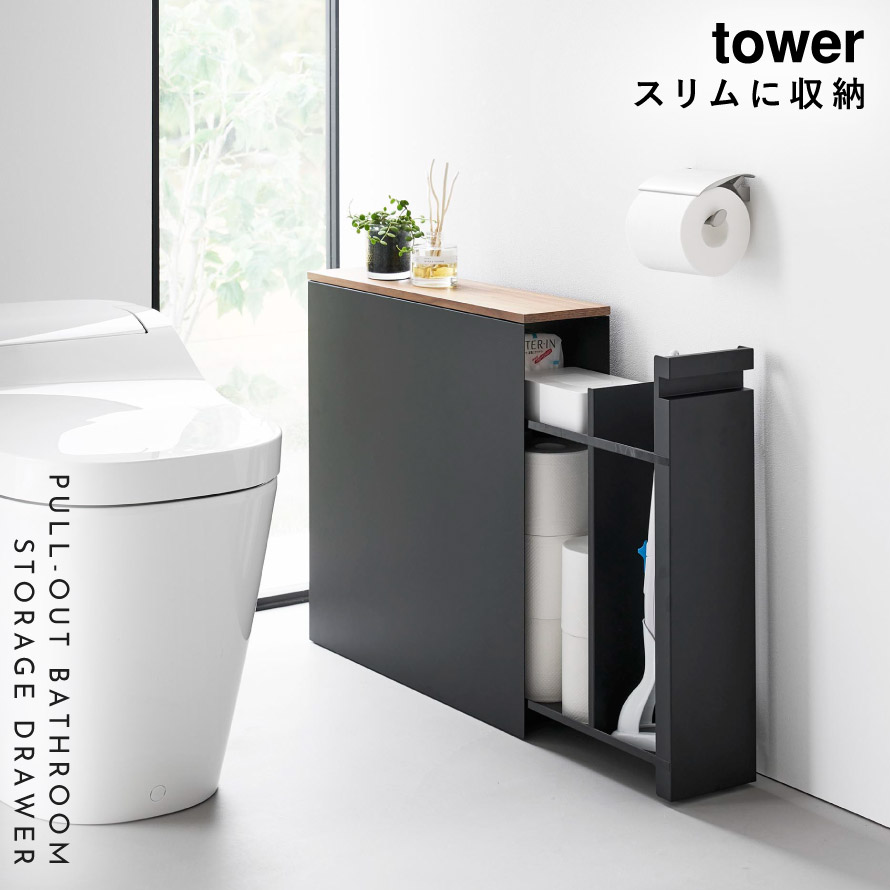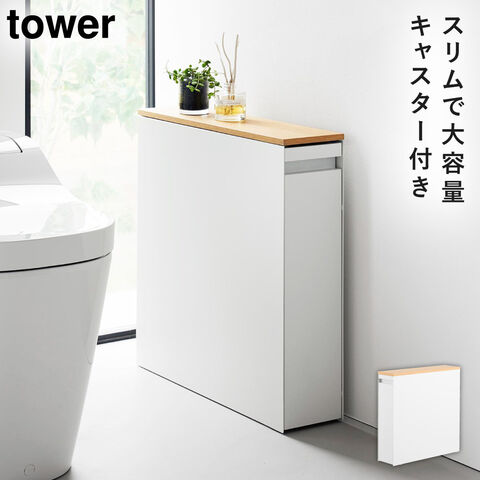 【ポイント5倍】隠せるトイレ引き出し収納 タワー 山崎実業 tower トイレラック トイレ ワゴン 収納 スリム キャスター おしゃれ モノトーン ホワイト ブラック 1426 1427