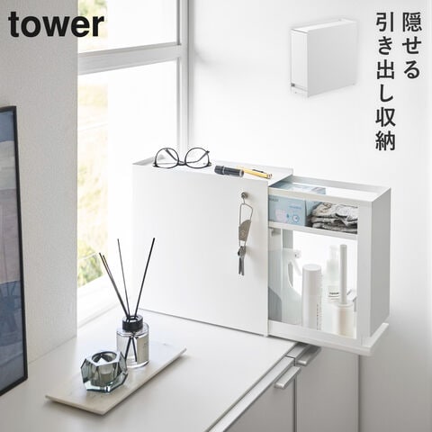 隠せる引き出し収納 タワー 山崎実業 tower キッチン 収納 カウンター上 洗面台 玄関 引き出し 収納 おしゃれ モノトーン ホワイト ブラック 1428 1429