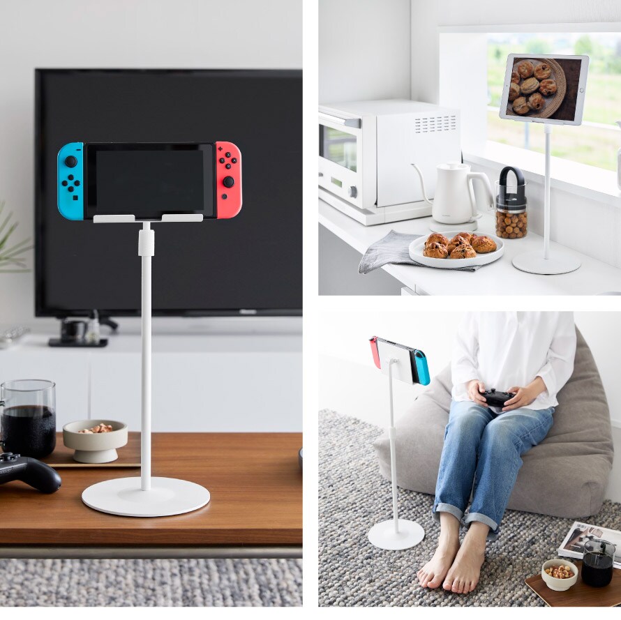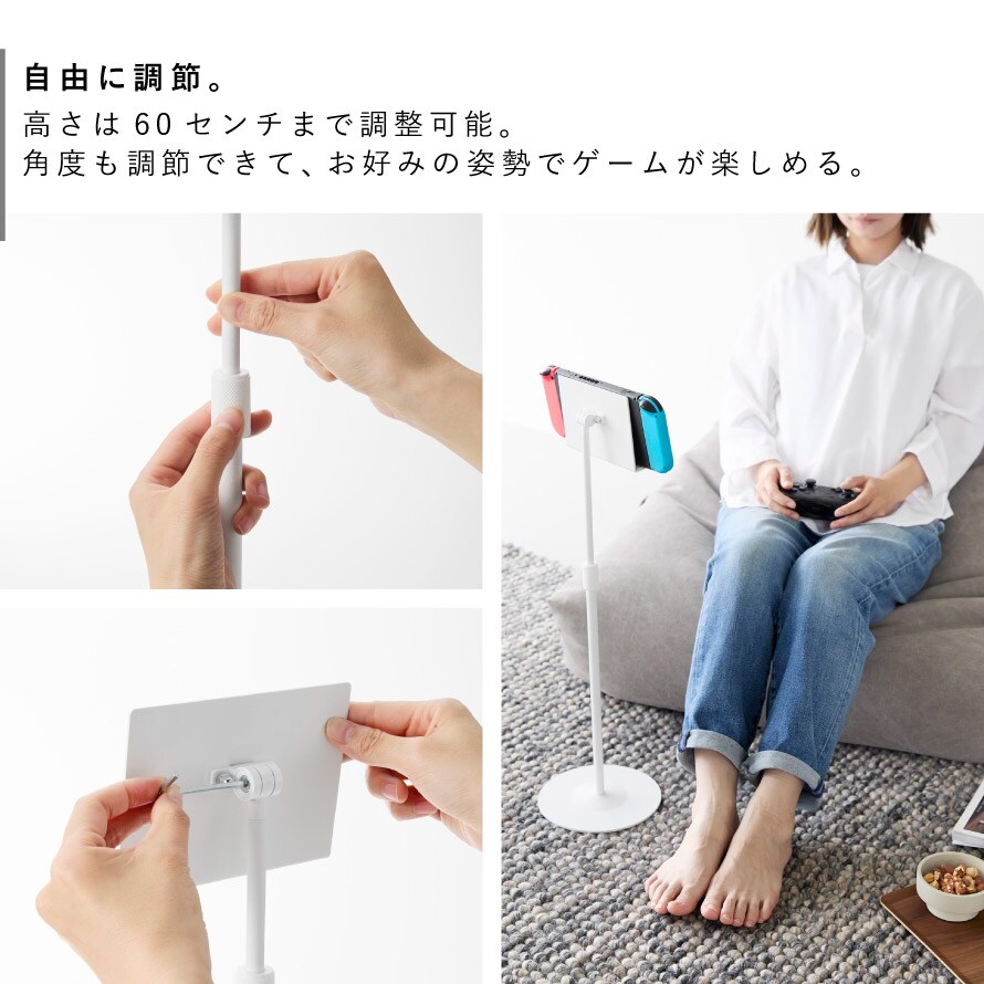 高さと角度を調節して、お好みの位置でタブレットやゲーム機を設置できます。高さは60センチまで調整可能。