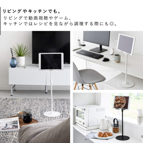 高さと角度が調節できるタブレットスタンド スマート 山崎実業 smart タブレット スタンド 高さ調節 角度調整 充電 おしゃれ モノトーン ホワイト ブラック 1433 1434