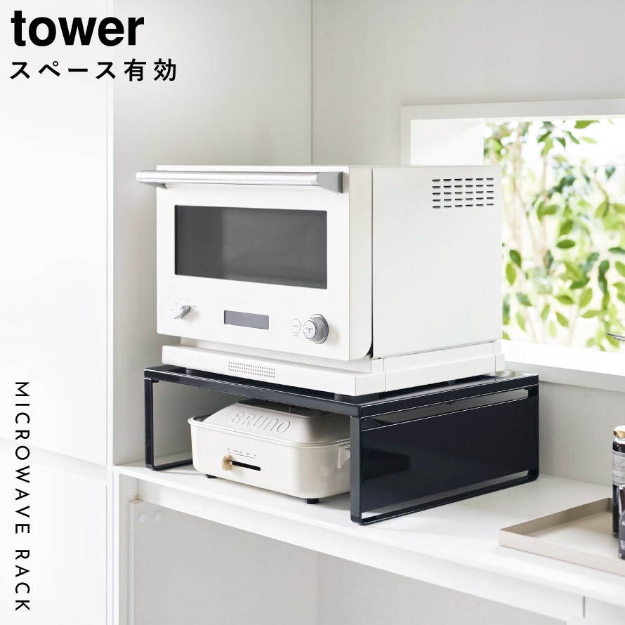 【ポイント5倍】オーブンレンジラック タワー 山崎実業 tower レンジ下 収納 ラック オーブンレンジ 棚 おしゃれ モノトーン ホワイト ブラック 1442 1443