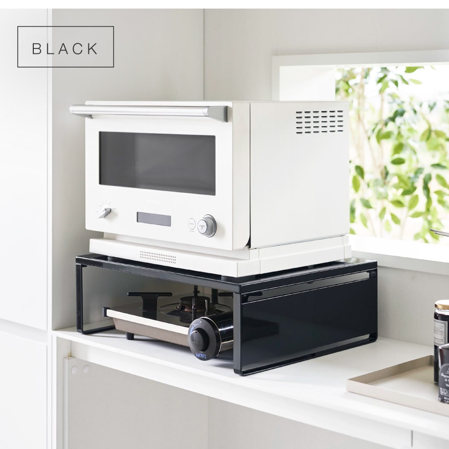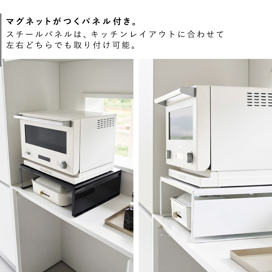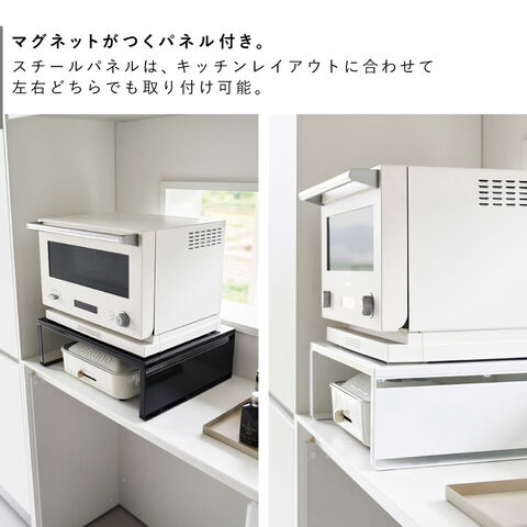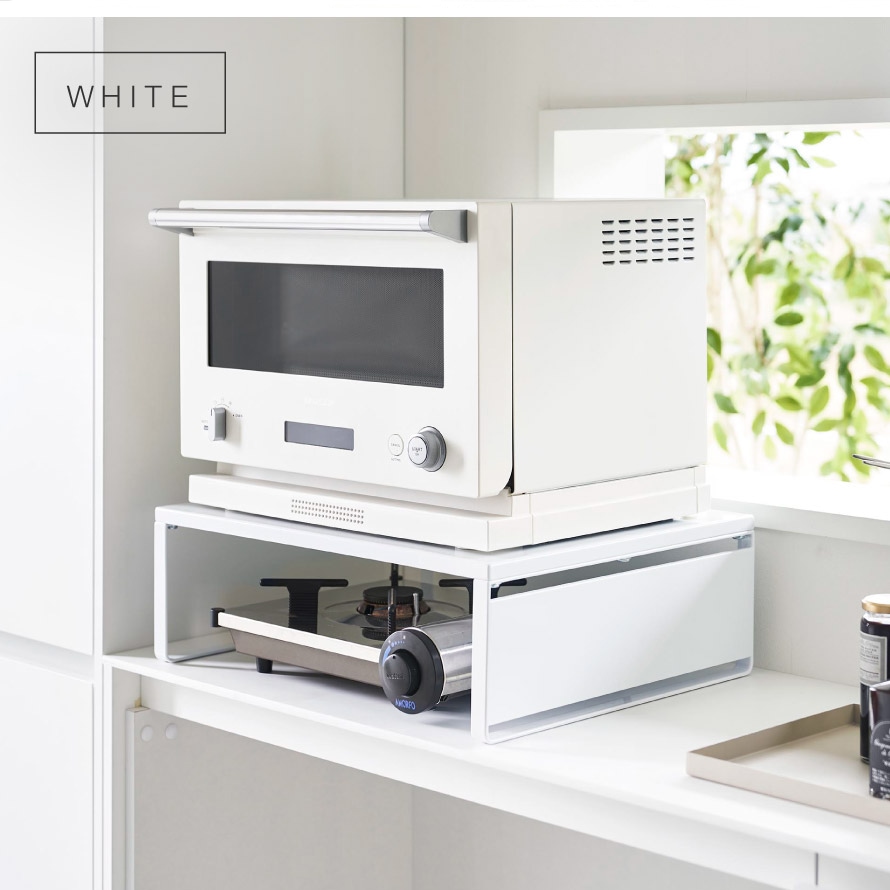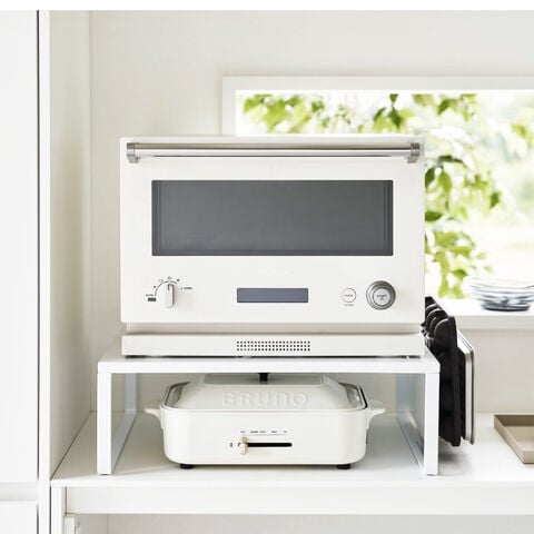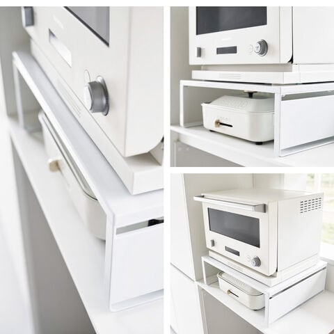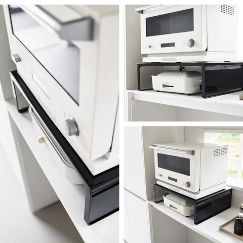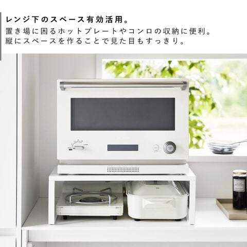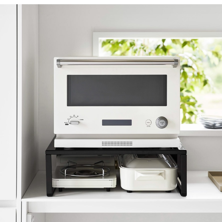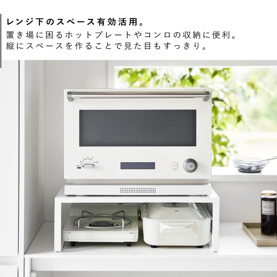 オーブンレンジの下にスペースを作って有効利用できるラック。