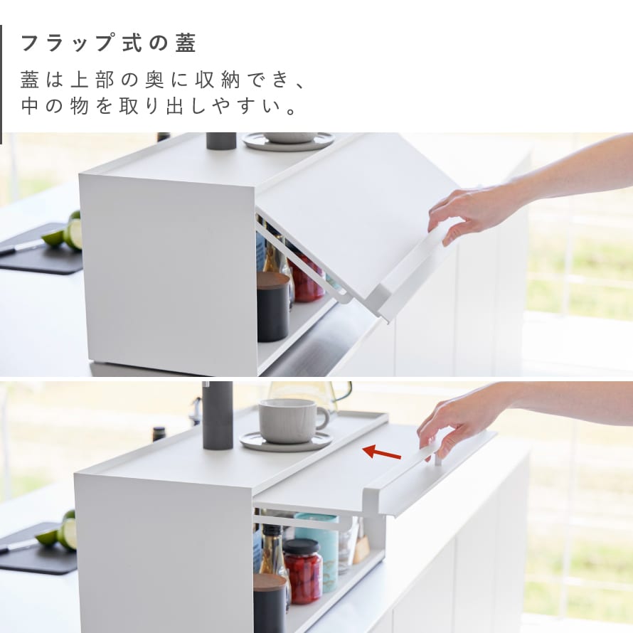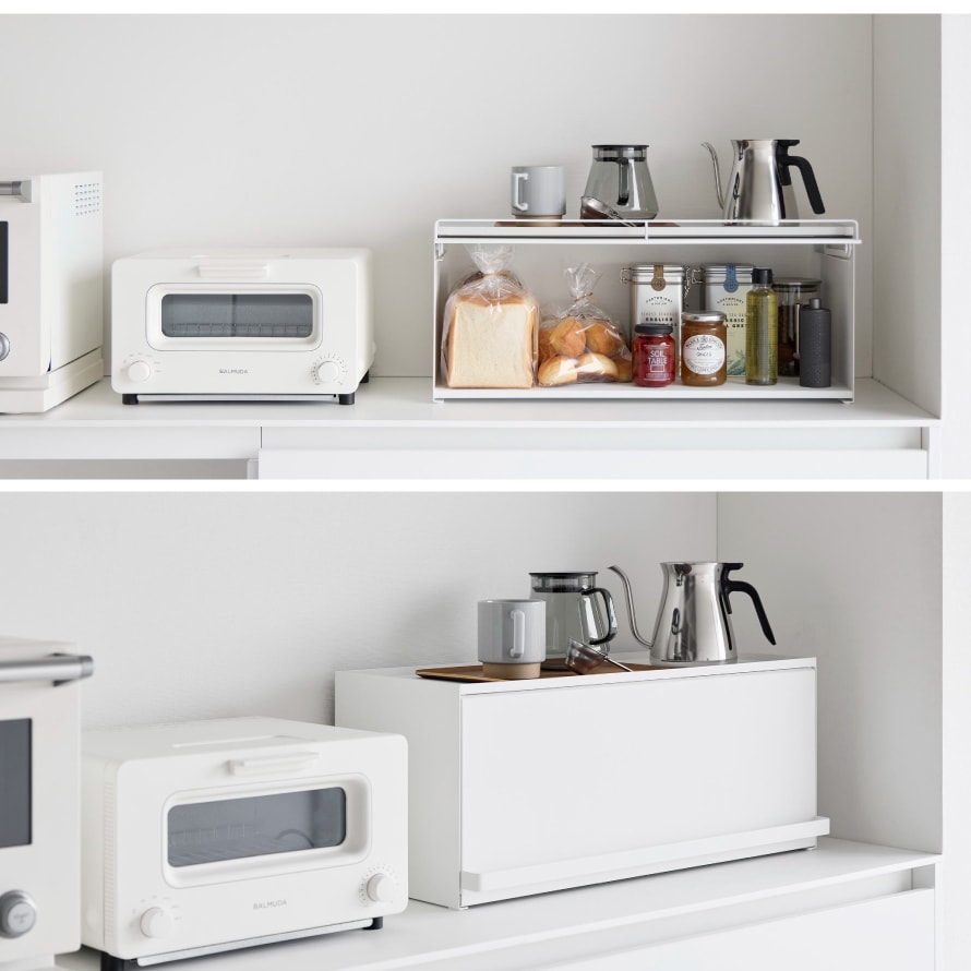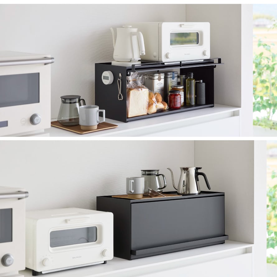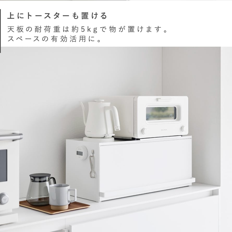 壁際に設置すればブレッドケースとしても使用でき、天板にはトースターを設置することができます。
