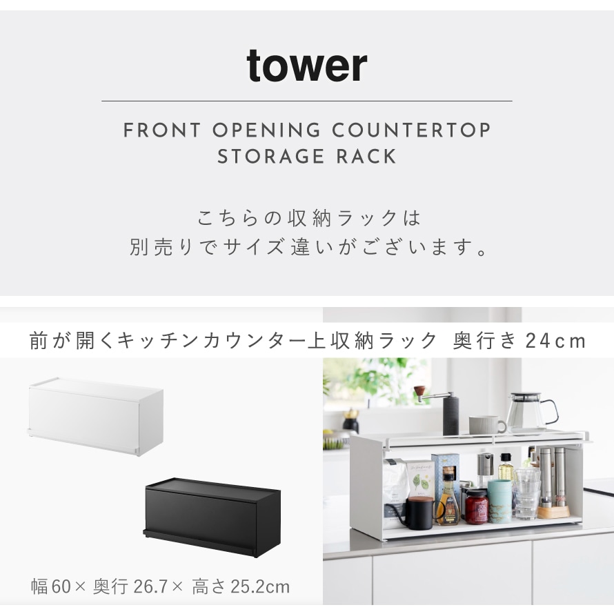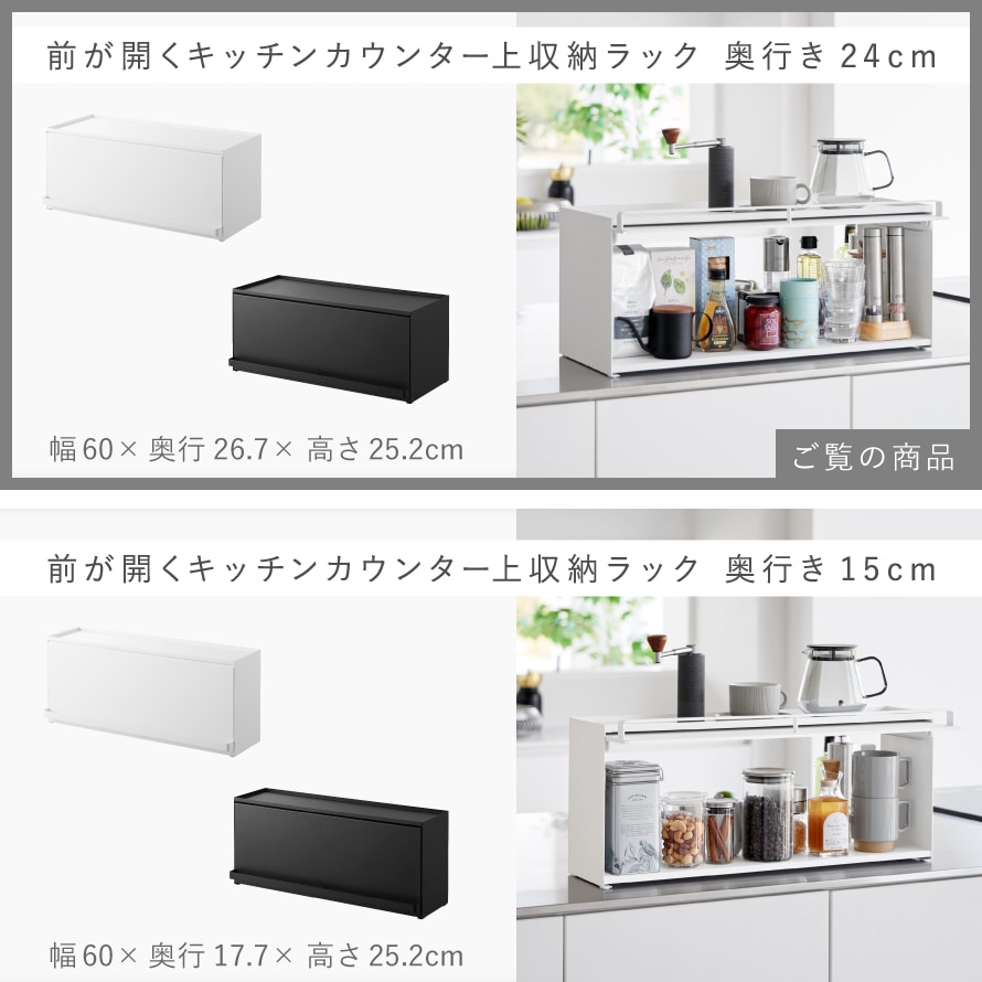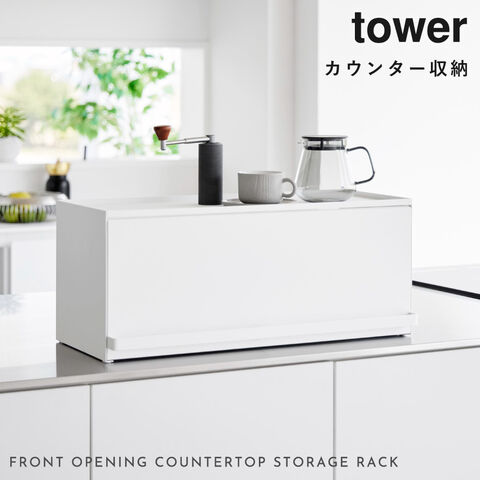 前が開くキッチンカウンター上収納ラック D24 タワー 山崎実業 tower カウンター上収納 ラック カウンター上 キッチン 収納 両面開閉 おしゃれ モノトーン ホワイト ブラック 1454 1455