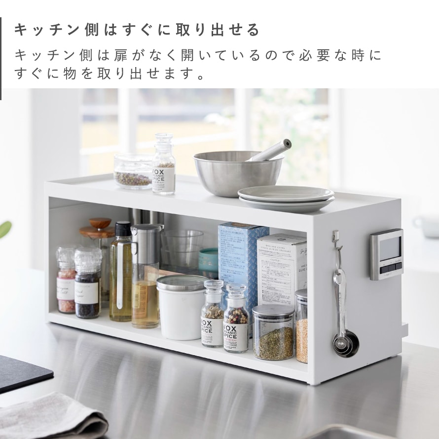 キッチン側は扉がないのでサッと物の出し入れがしやすい。