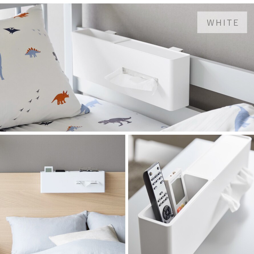 2段ベッドのフレームやベッドのヘッドボードなどの手に取りやすい場所に浮かせて設置できます。