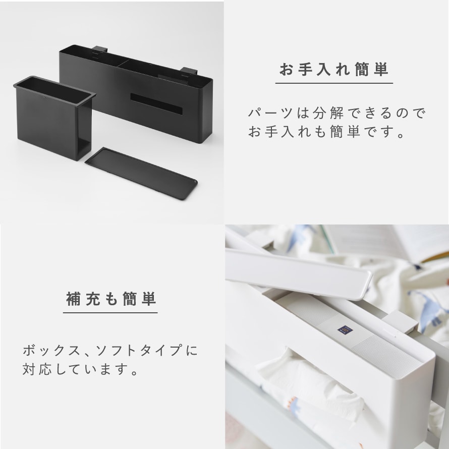 | 耐荷重 | 1.5kg(ティッシュケース/1kg、ダストボックス/500g) |