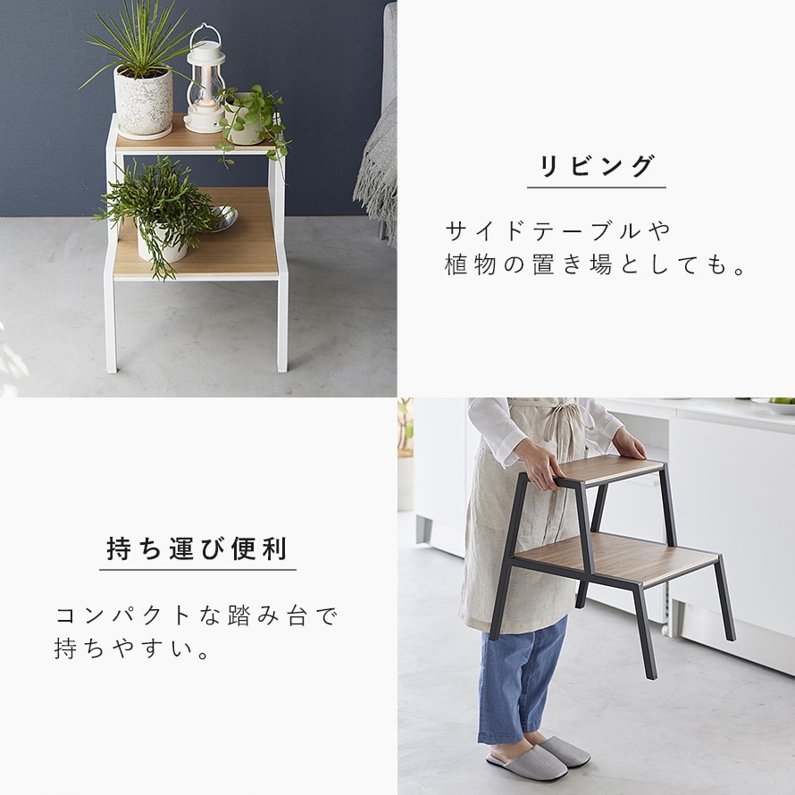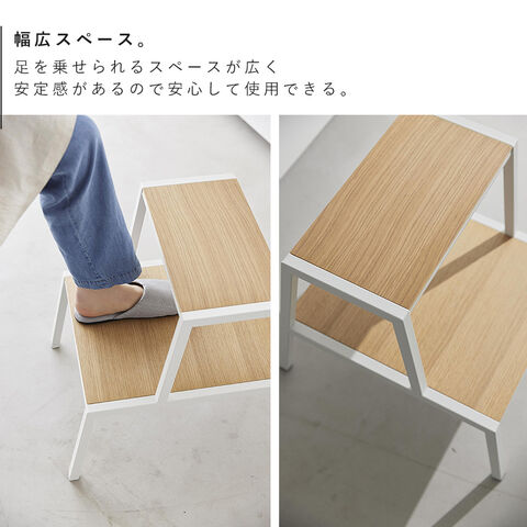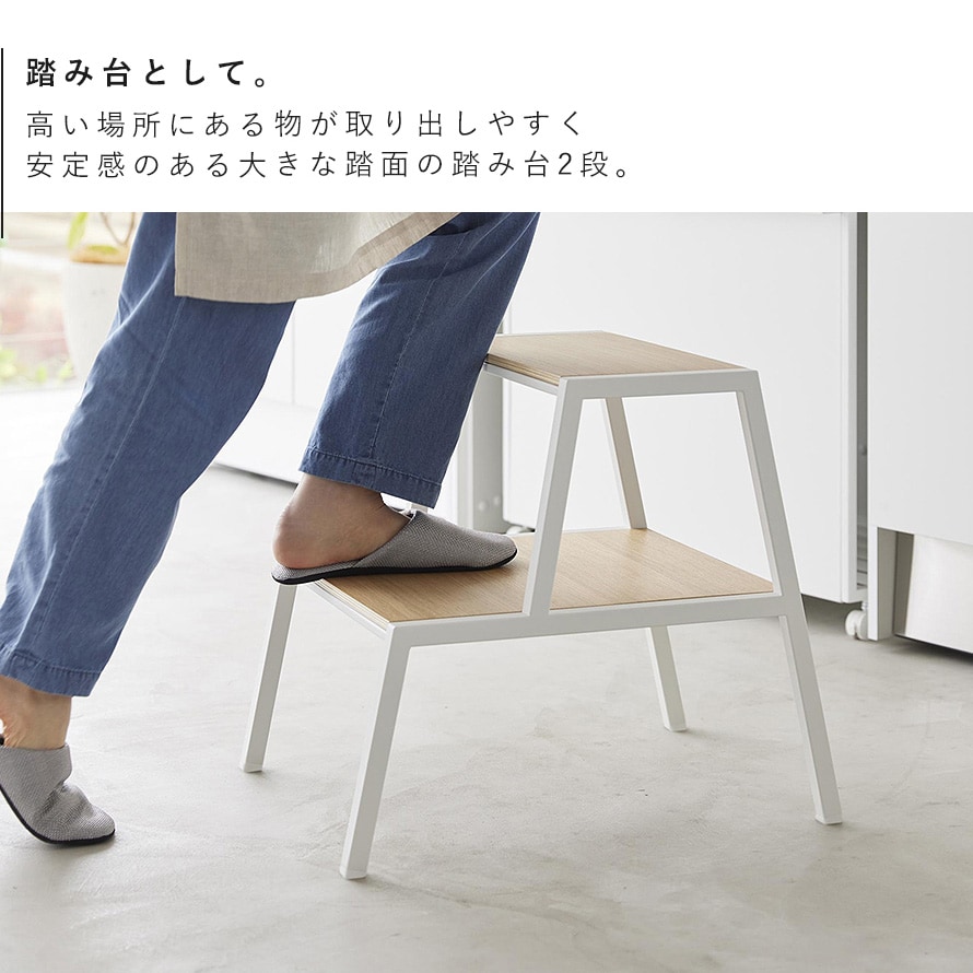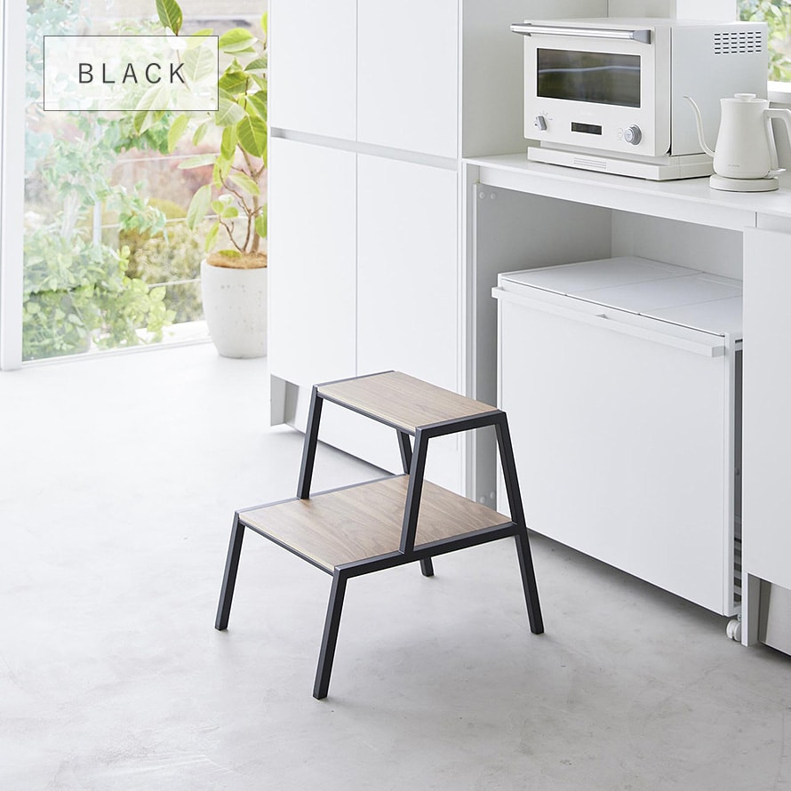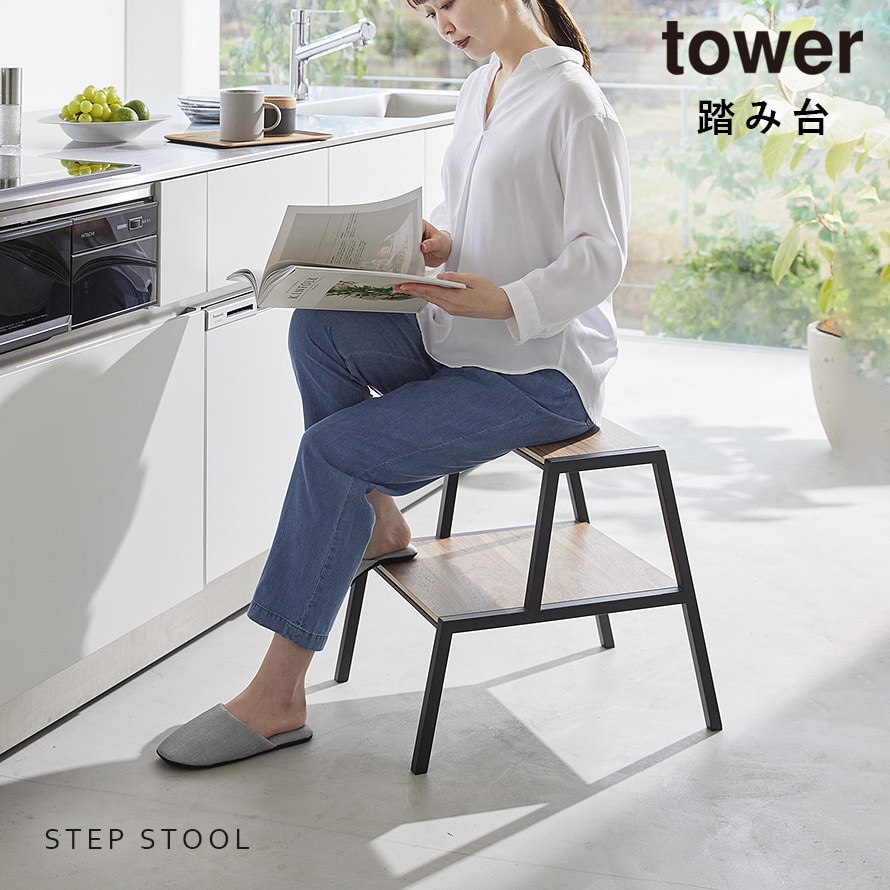 踏み台 タワー 2段 山崎実業 tower おしゃれ 踏み台 2段 木製 スツール キッチン モノトーン ホワイト ブラック 1467 1468