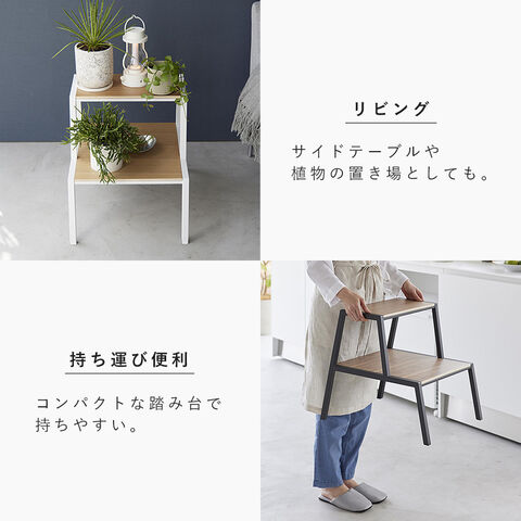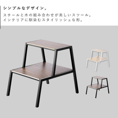 【ポイント5倍】踏み台 タワー 2段 山崎実業 tower おしゃれ 踏み台 2段 木製 スツール キッチン モノトーン ホワイト ブラック 1467 1468