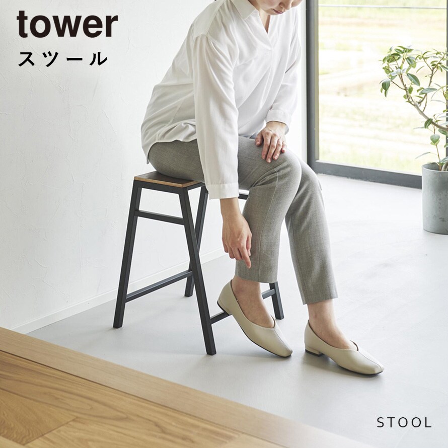 【ポイント5倍】スツール タワー H45 山崎実業 tower キッチン 作業 椅子 スツール 木製 玄関 おしゃれ モノトーン ホワイト ブラック 1469 1470