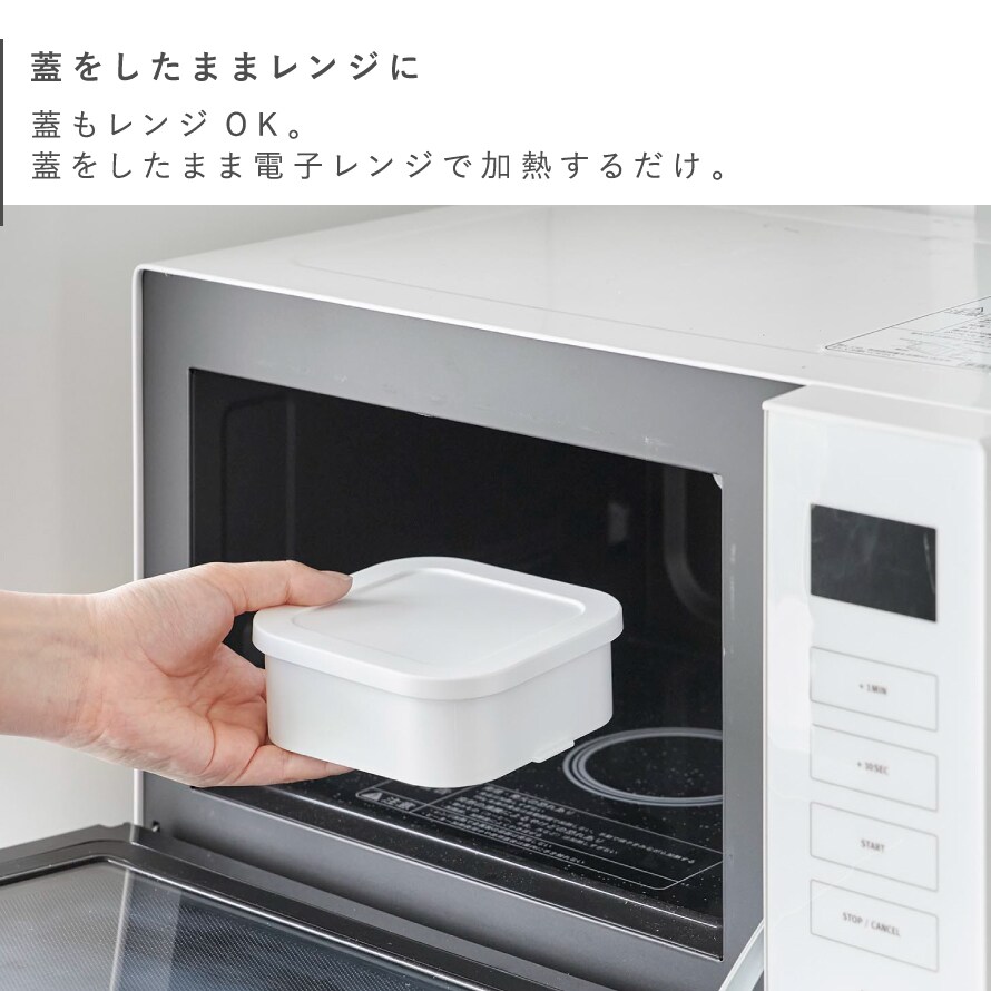 蓋をしたまま電子レンジで加熱でき、容器・ザル・蓋は凹凸が少なく洗いやすい設計で食器洗い乾燥機にも対応しています。