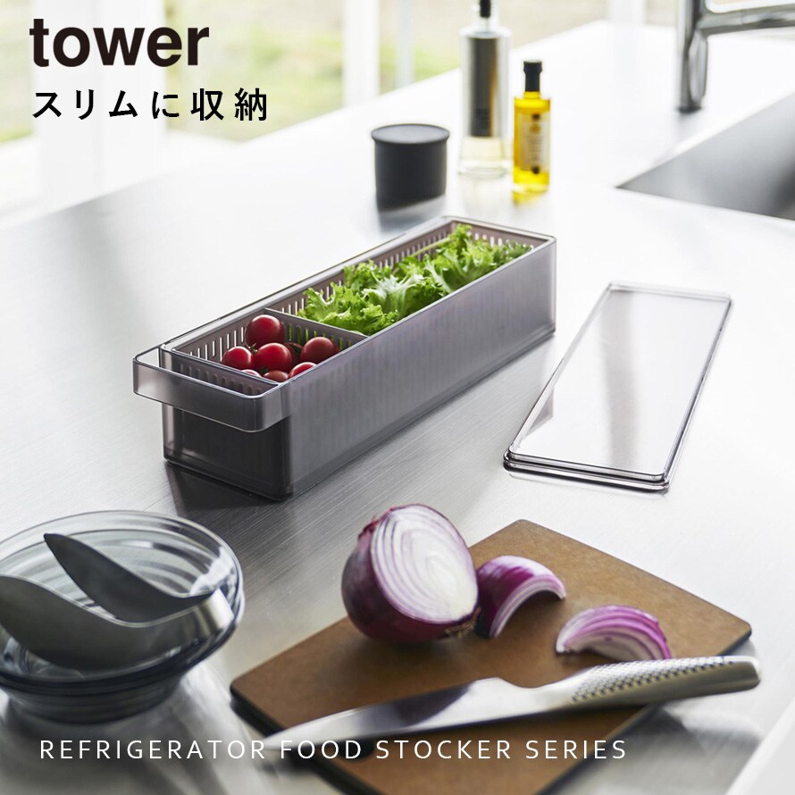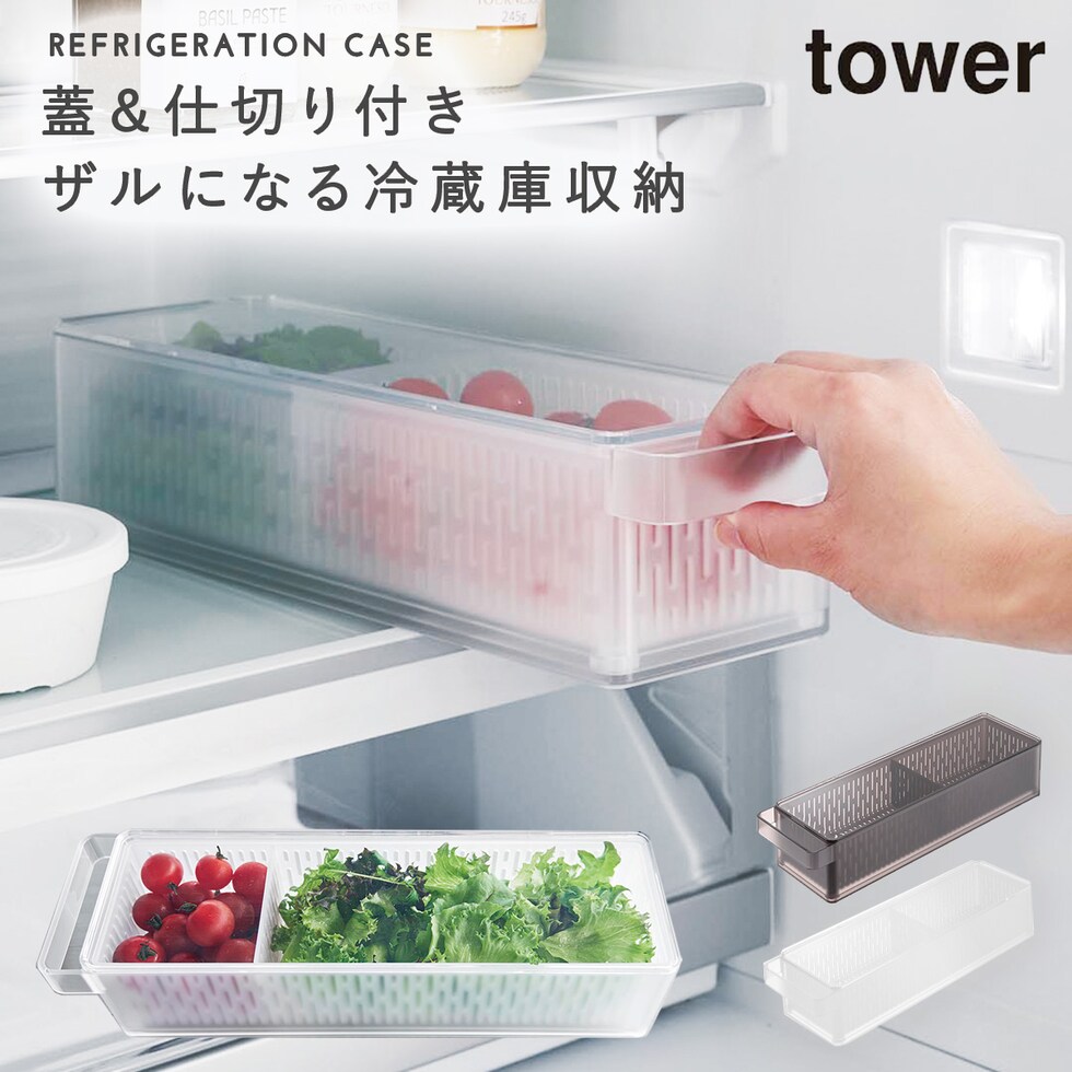 【ポイント5倍】冷蔵庫中ザルボウル タワー 蓋&仕切り付き 山崎実業 tower 冷蔵庫内 収納 グッズ ラック おしゃれ モノトーン ホワイト ブラック 1473 1474