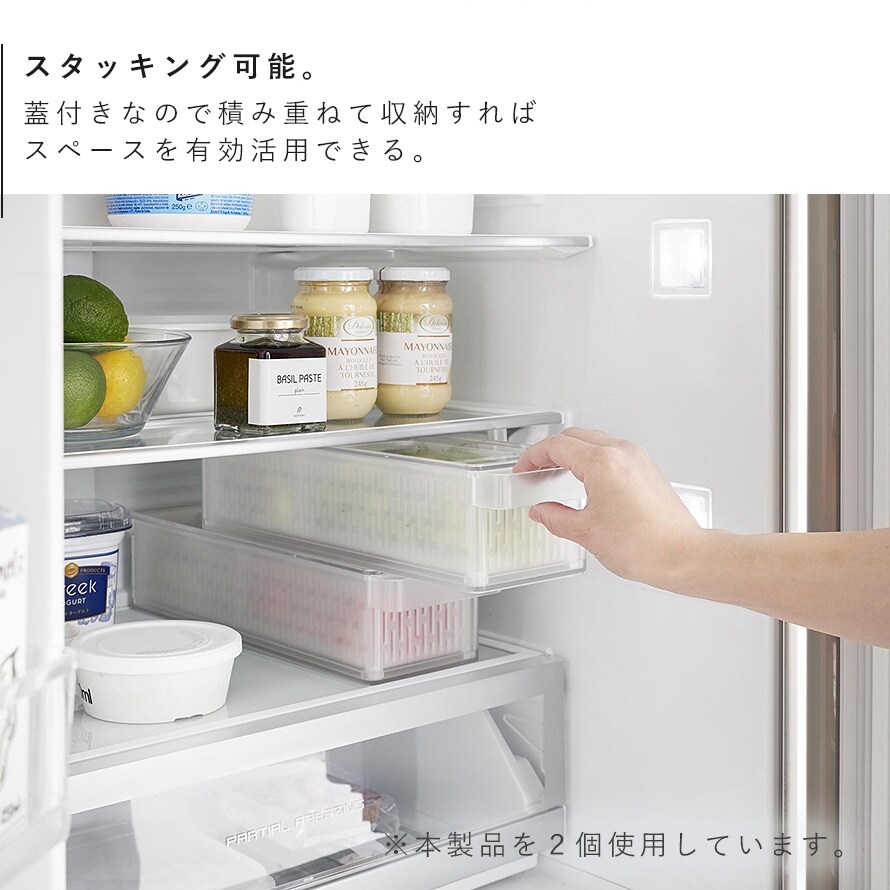 | 備考 | 奥行35cm以上の冷蔵庫内の棚に収納可能 |