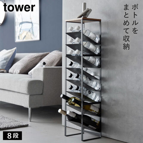 天板付きボトルストッカー 8段 タワー 山崎実業 tower ボトル ストッカー 斜め ボトルラック スリム ペットボトル 収納 ラック おしゃれ モノトーン ホワイト ブラック 1491 1492のレビュー