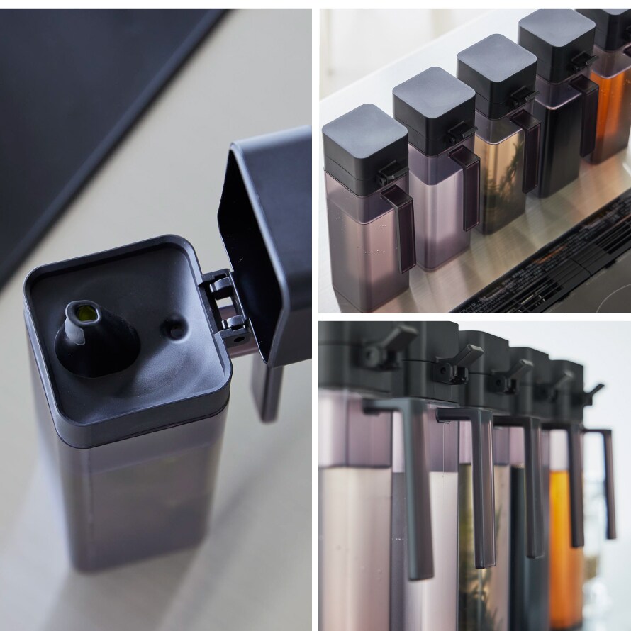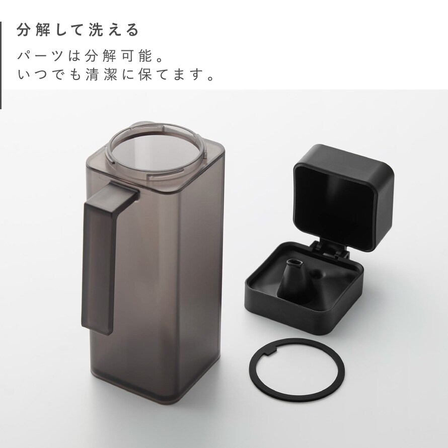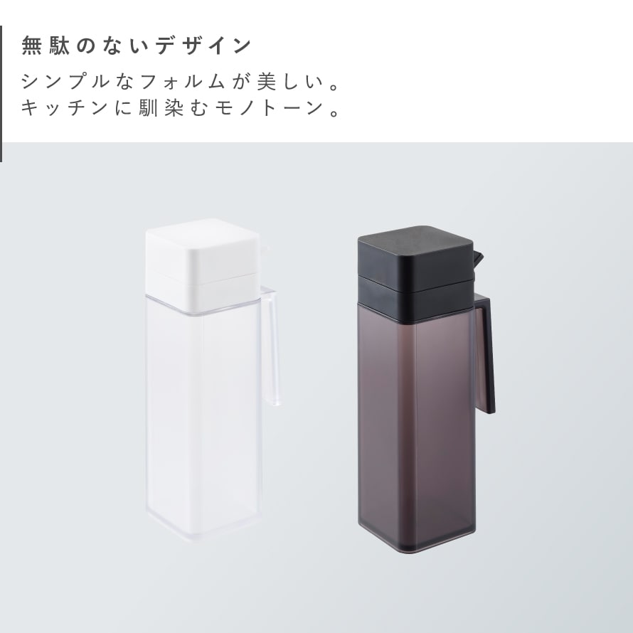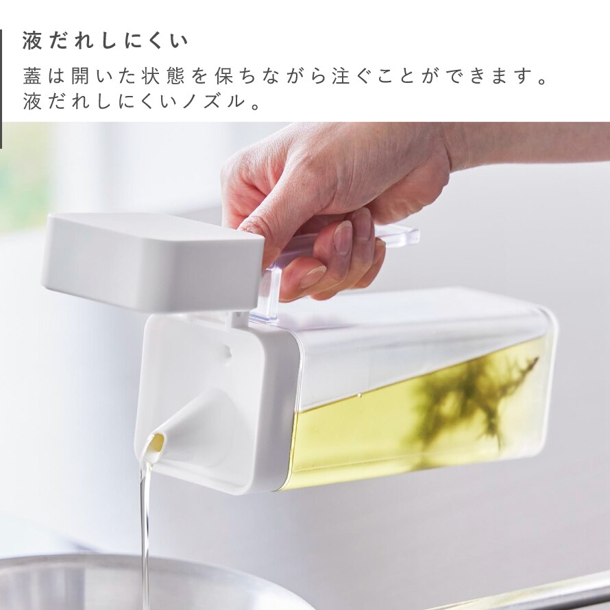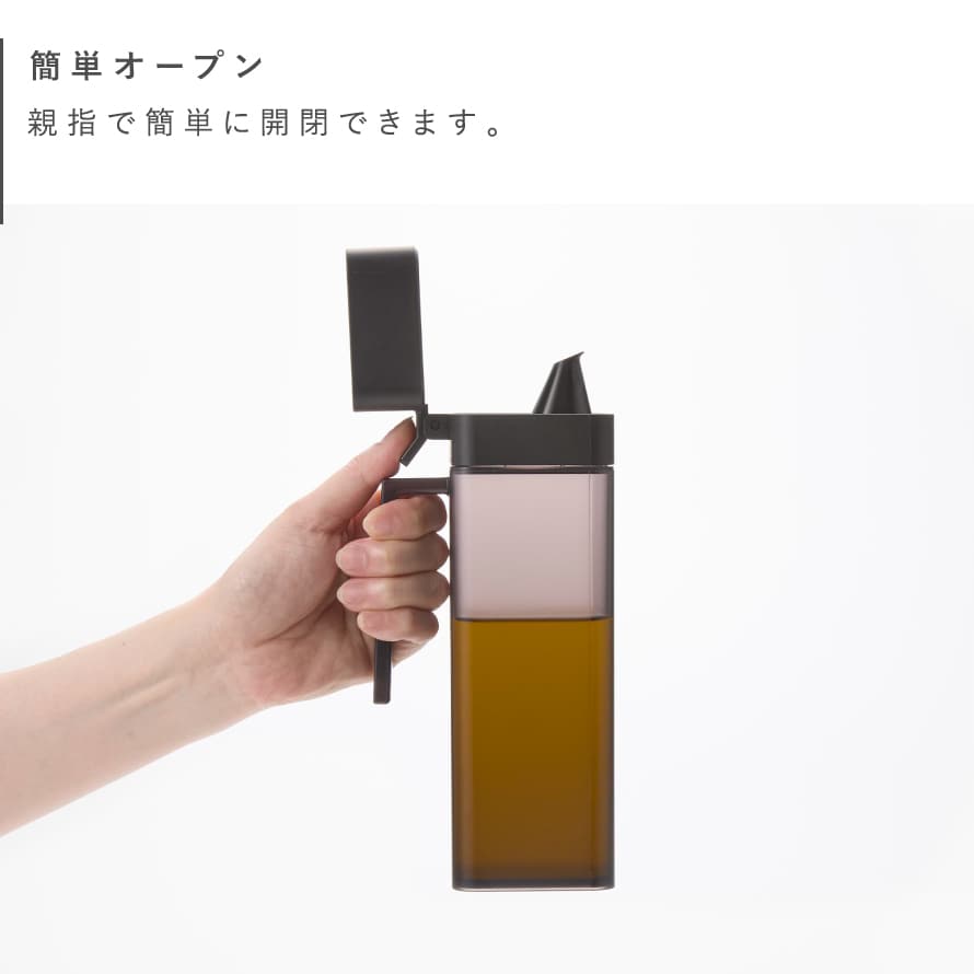 液だれしにくいノズルで、蓋は親指で簡単に開閉でき、開いた状態を保ちながら注ぐことができます。
