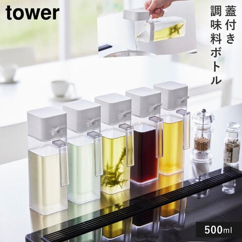 【ポイント5倍】蓋付き調味料ボトル タワー 山崎実業 tower 調味料 ボトル 液体 調味料ボトル 容器 おしゃれ モノトーン ホワイト ブラック 1517 1518