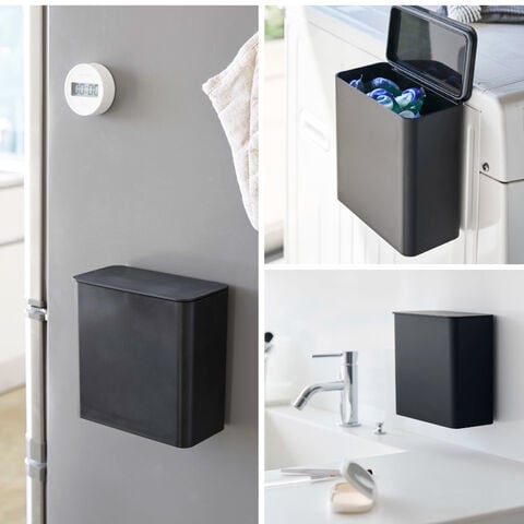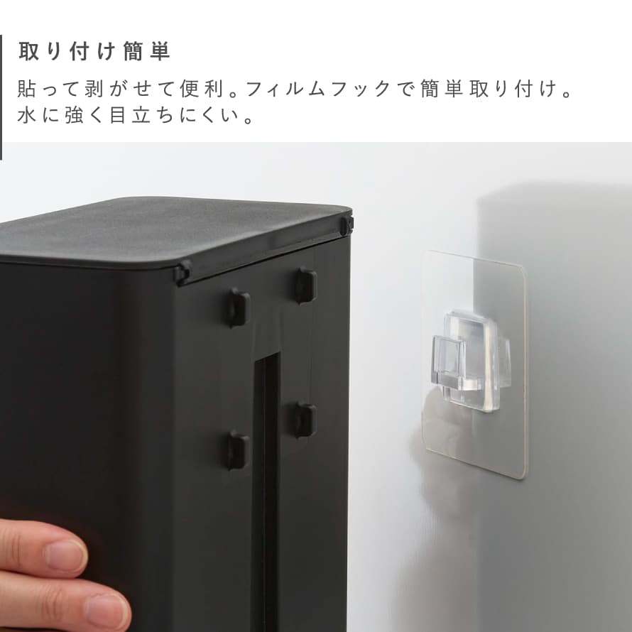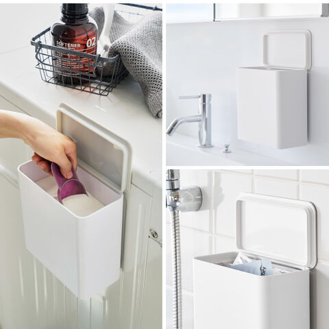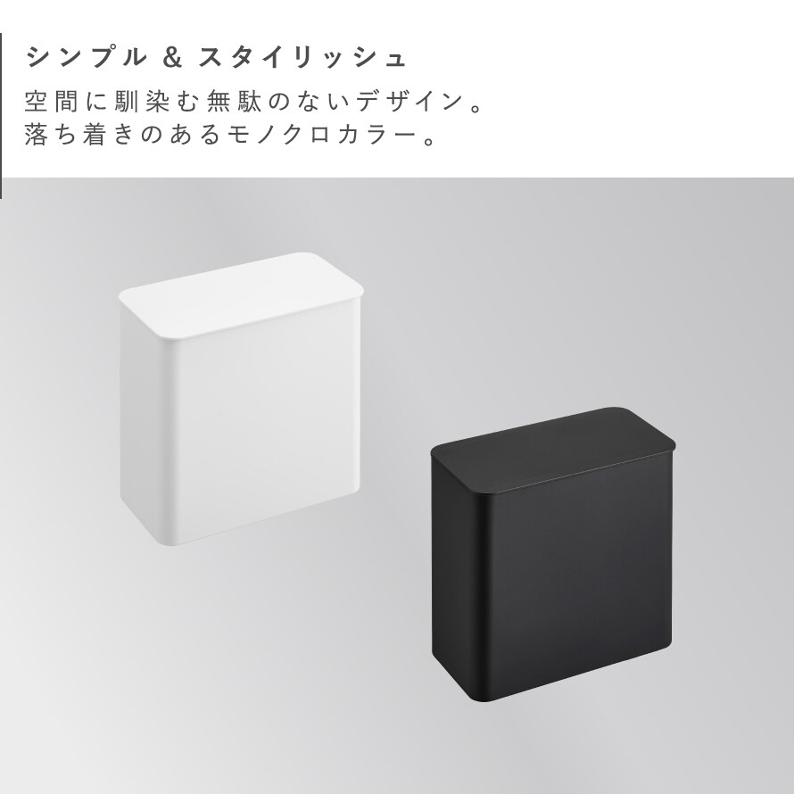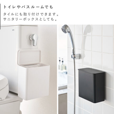 浮かせて設置できるのでお掃除もラクラク。洗面所やトイレタンクに設置してゴミを捨てるのも便利。パッキン付きなのでニオイも防ぎます。