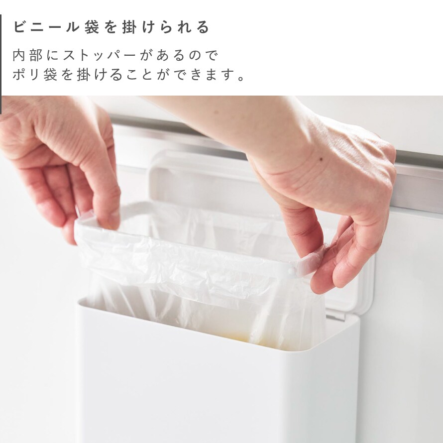 ストッパーがあるので内側にポリ袋を掛けることができます。
