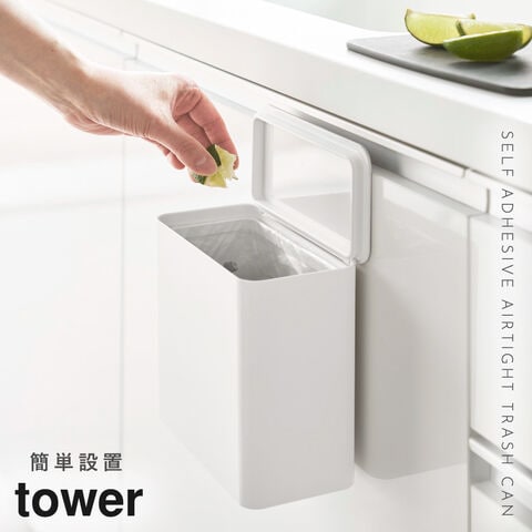 【ポイント5倍】フィルムフック密閉ゴミ箱 タワー 山崎実業 tower シンク 扉 ゴミ箱 生ゴミ 密閉 小さい おしゃれ モノトーン ホワイト ブラック 1520 1521
