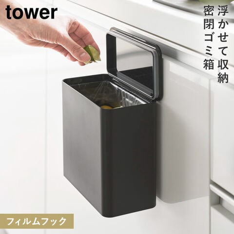 【ポイント5倍】フィルムフック密閉ゴミ箱 タワー 山崎実業 tower シンク 扉 ゴミ箱 生ゴミ 密閉 小さい おしゃれ モノトーン ホワイト ブラック 1520 1521