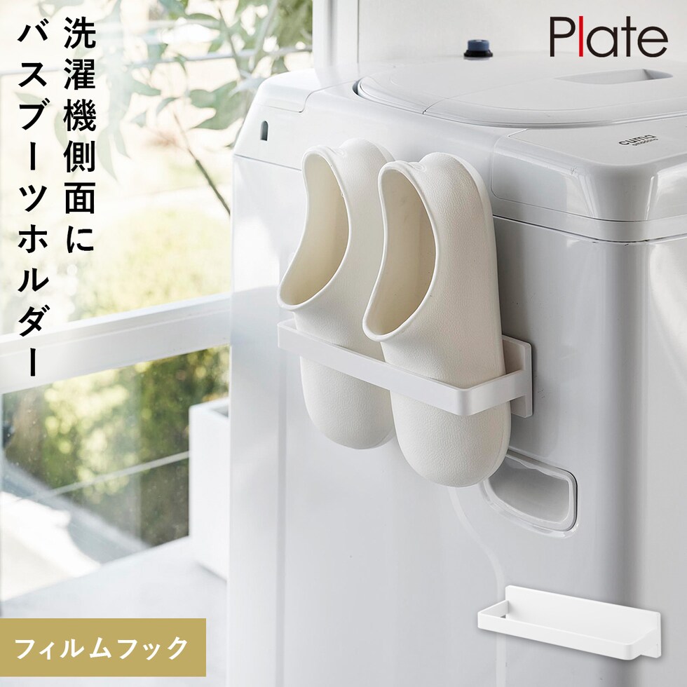 フィルムフック バスブーツホルダー プレート ホワイト 山崎実業 Plate バスブーツ 収納 ホルダー バスブーツホルダー 洗濯機 おしゃれ モノトーン ホワイト 1529