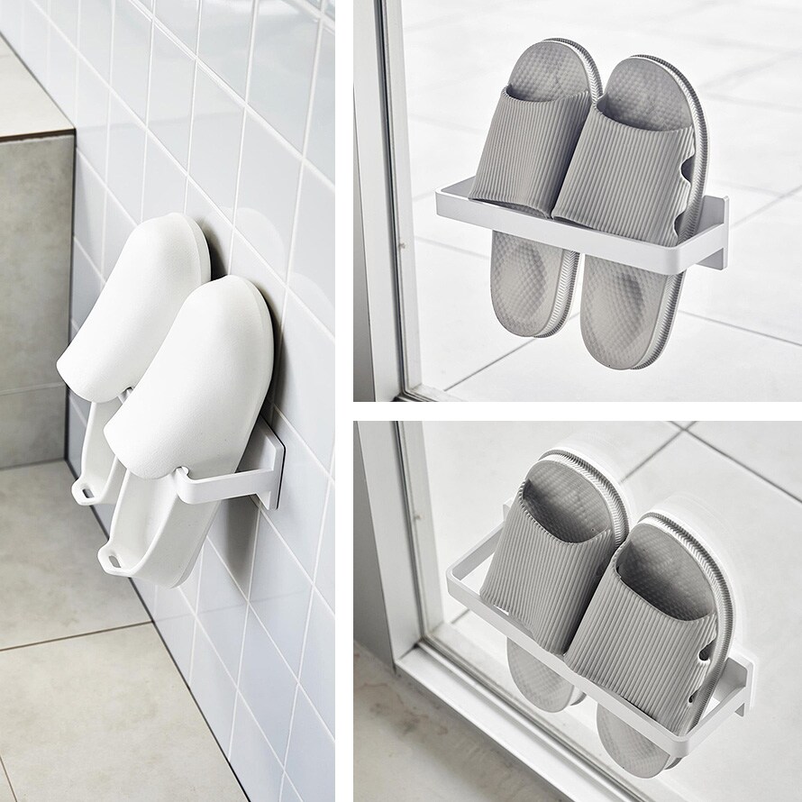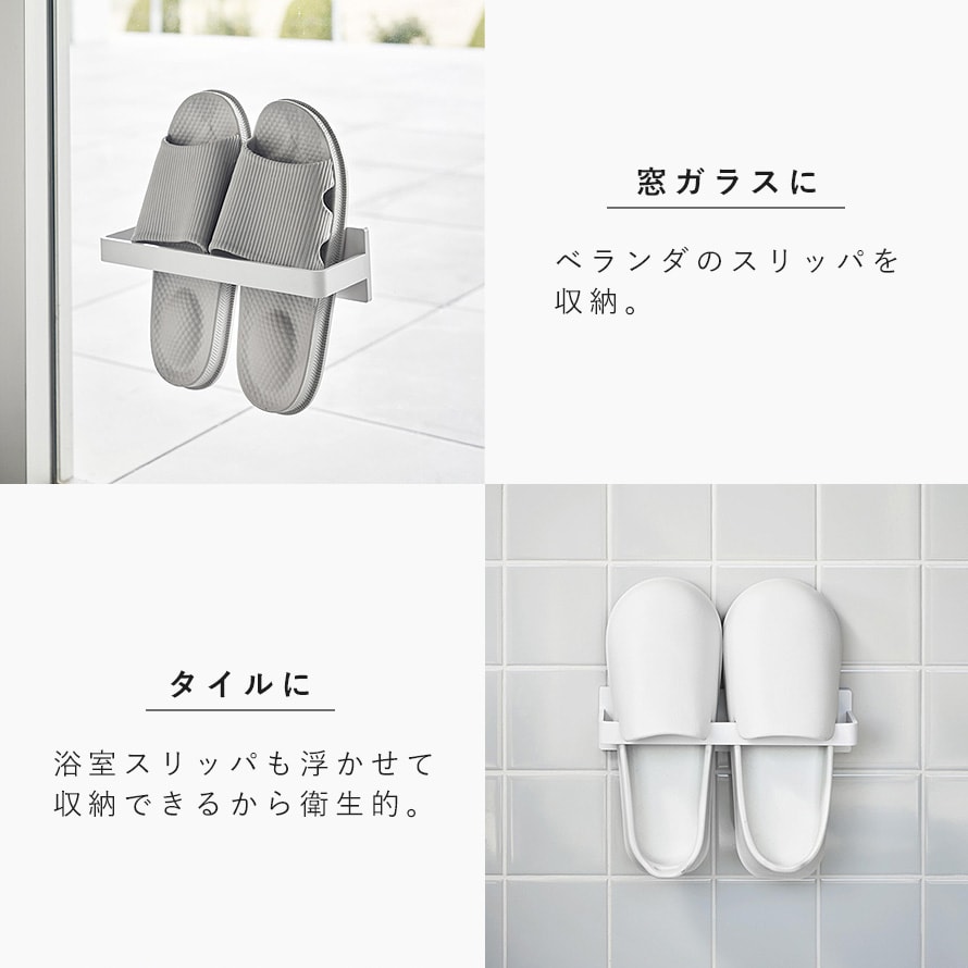 ベランダのスリッパや、浴室用スリッパを浮かせて収納できるので衛生的。