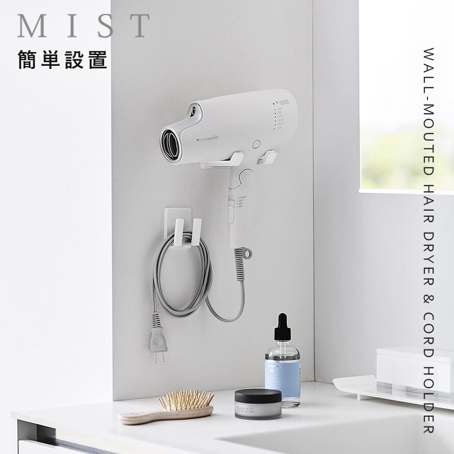 ドライヤー&コードホルダー ミスト 石こうボード壁対応 ホワイト 山崎実業 MIST ドライヤーホルダー 壁掛け ドライヤー ホルダー 収納 ラック 壁 石膏ボード ピン 洗面所 おしゃれ モノトーン