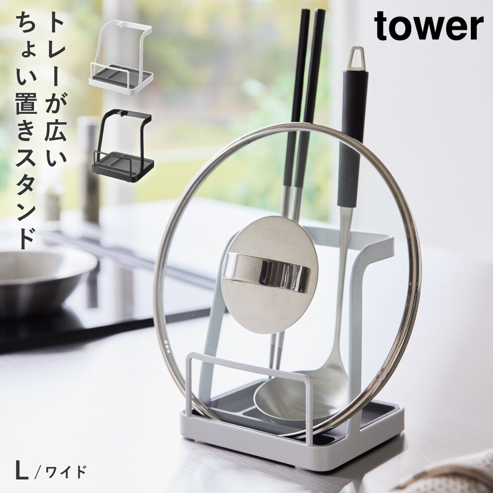 お玉&鍋ふたスタンド L タワー 山崎実業 tower 鍋蓋スタンド お玉 鍋蓋 スタンド 菜箸置き おしゃれ モノトーン ホワイト ブラック 1551 1552