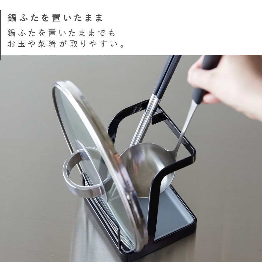 お料理時間をより快適に。鍋ふたを立てたままでもお玉・菜箸がサッと置けてサッと取れます。