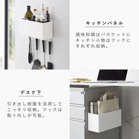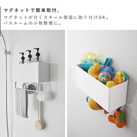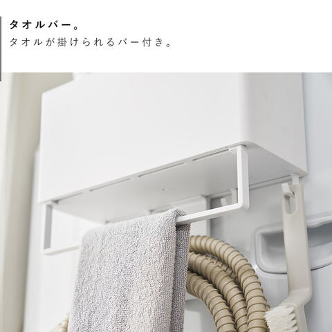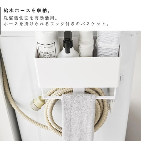 マグネットストレージバスケット プレート タオルバー&ホースフック付き ホワイト 山崎実業 Plate 洗濯機 マグネット 収納 ラック タオルハンガー 給水ホース おしゃれ モノトーン ホワイト 1557
