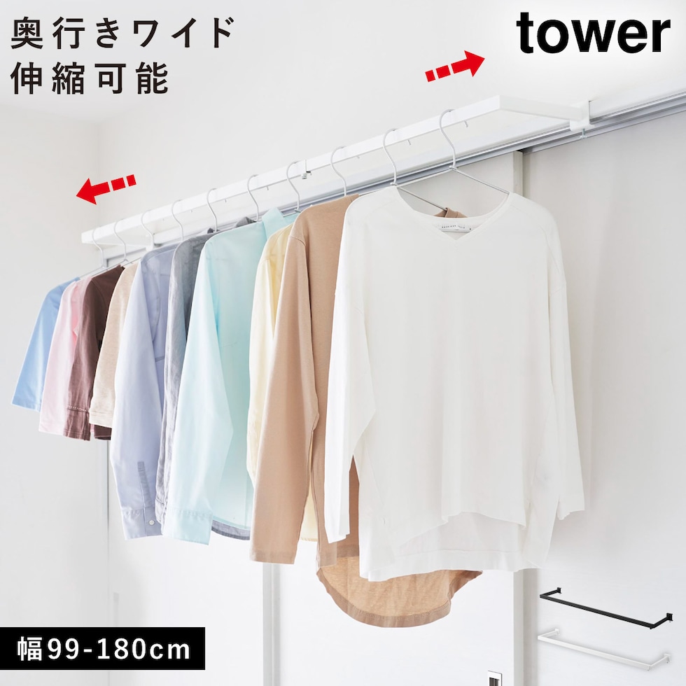 【ポイント5倍】鴨居伸縮室内物干しハンガー タワー 奥行ワイド 山崎実業 tower 物干し ハンガー 室内 鴨居 窓枠 物干しハンガー 部屋干し おしゃれ モノトーン ホワイト ブラック 1588 1589