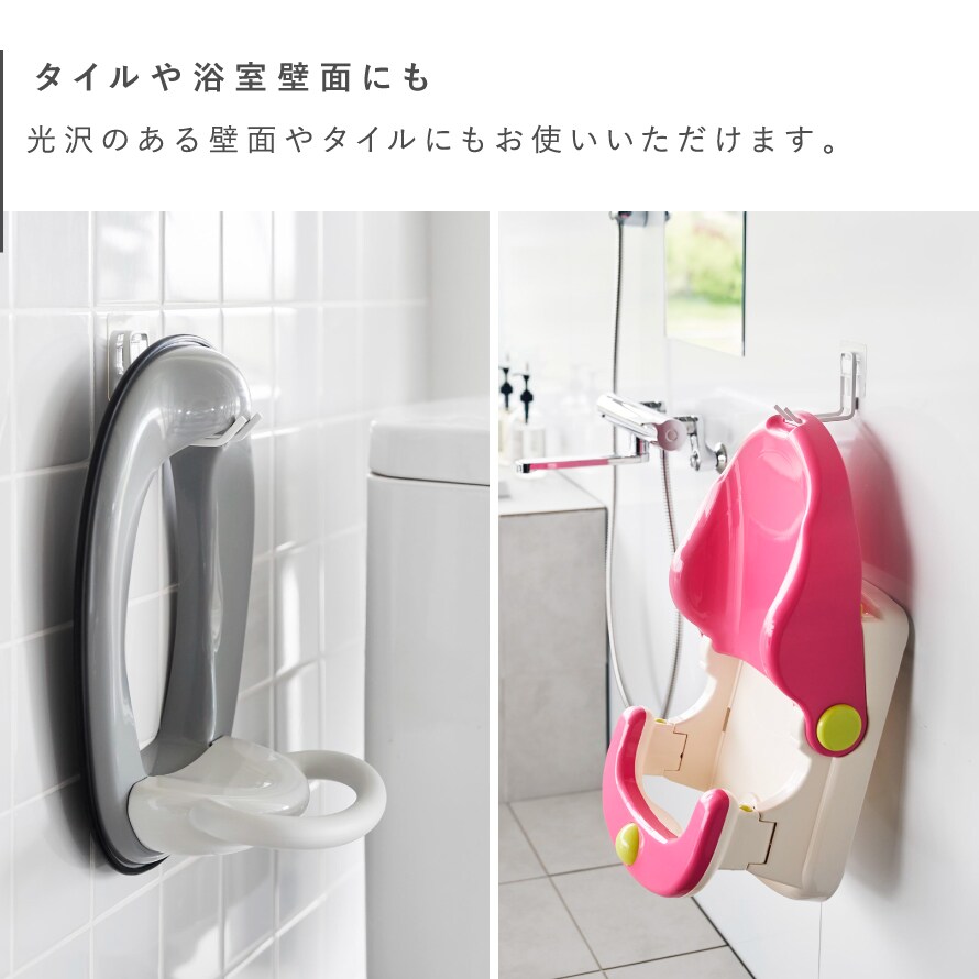 補助便座やトイレブラシ、スプレーなどの収納に。タイルや浴室壁面にも取り付け可能です。