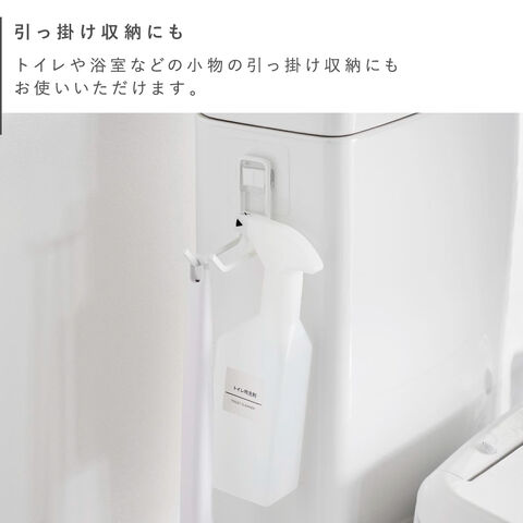 フィルムフックでトイレタンクに浮かせて設置できるトイレ用品収納フック。